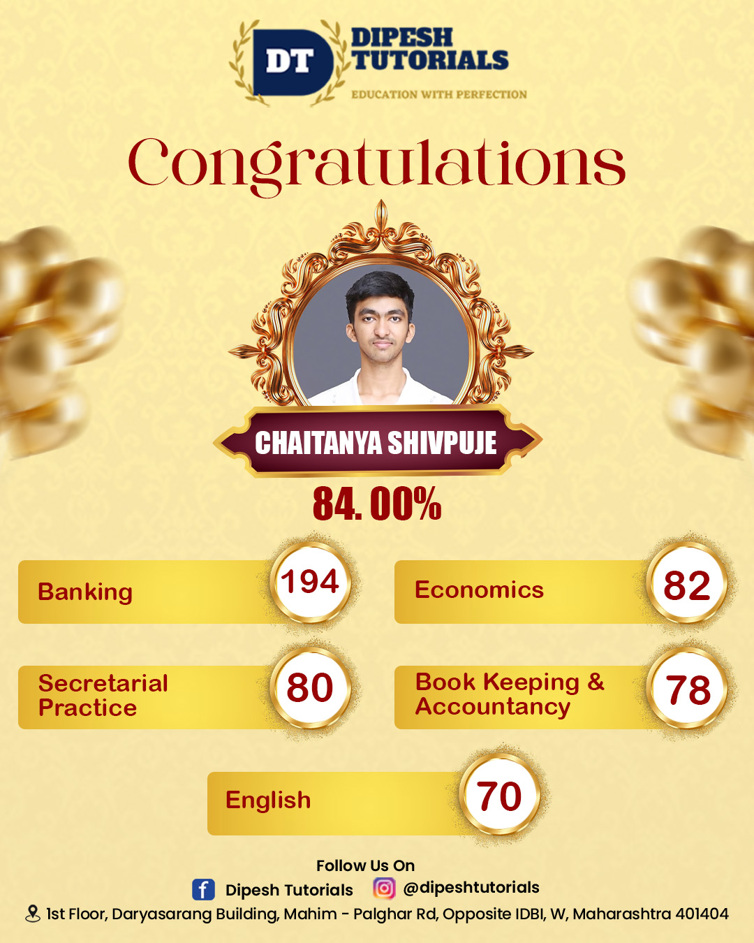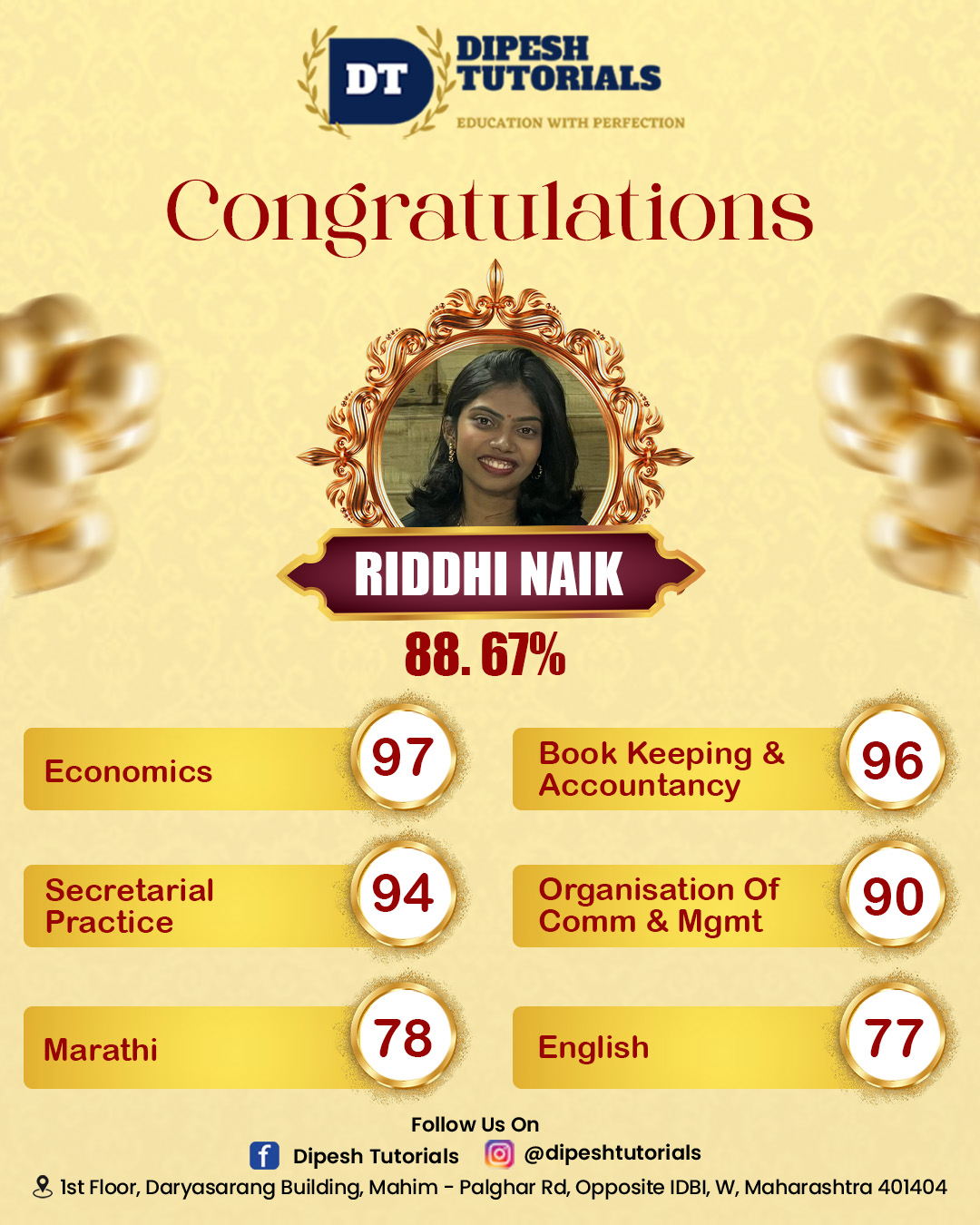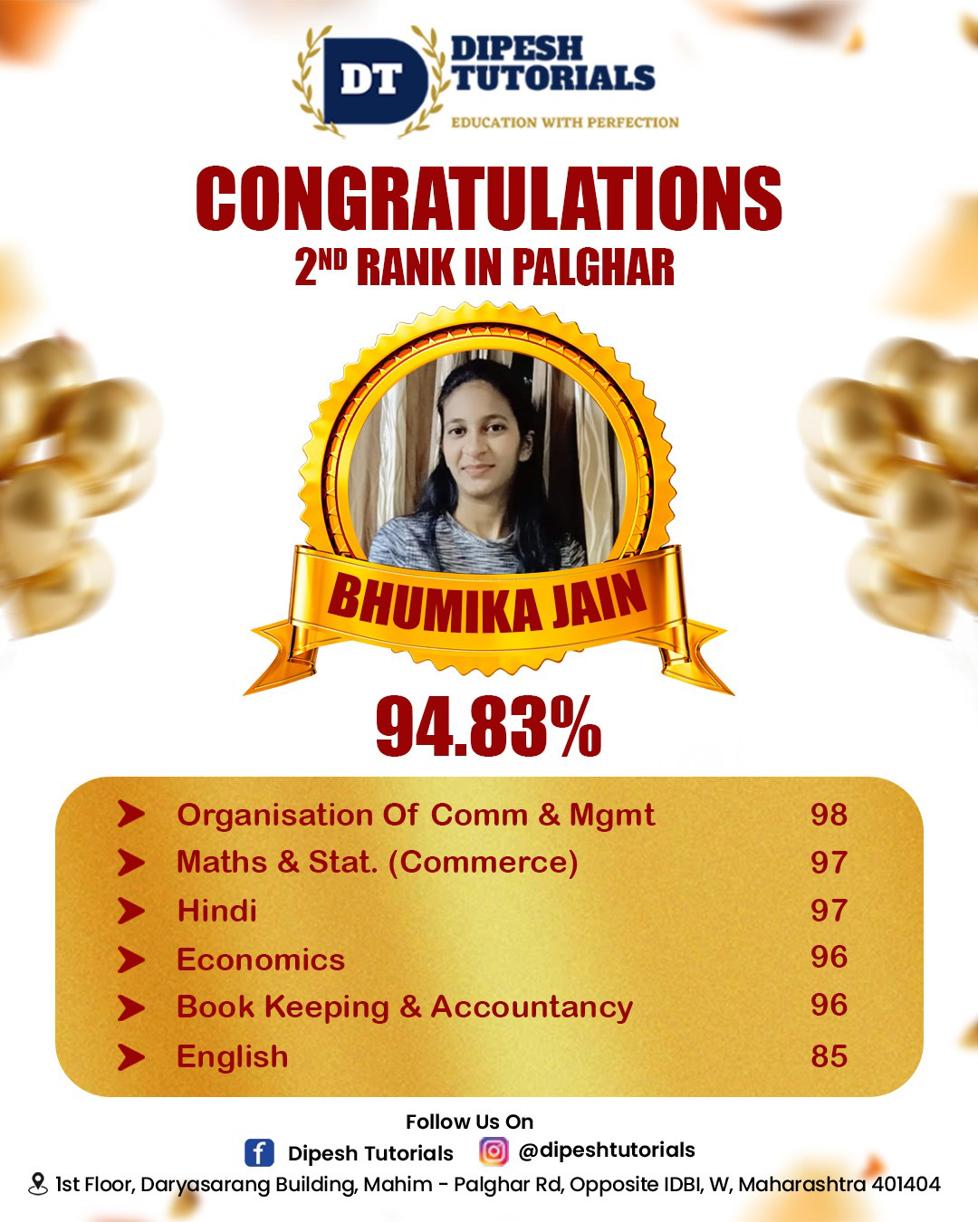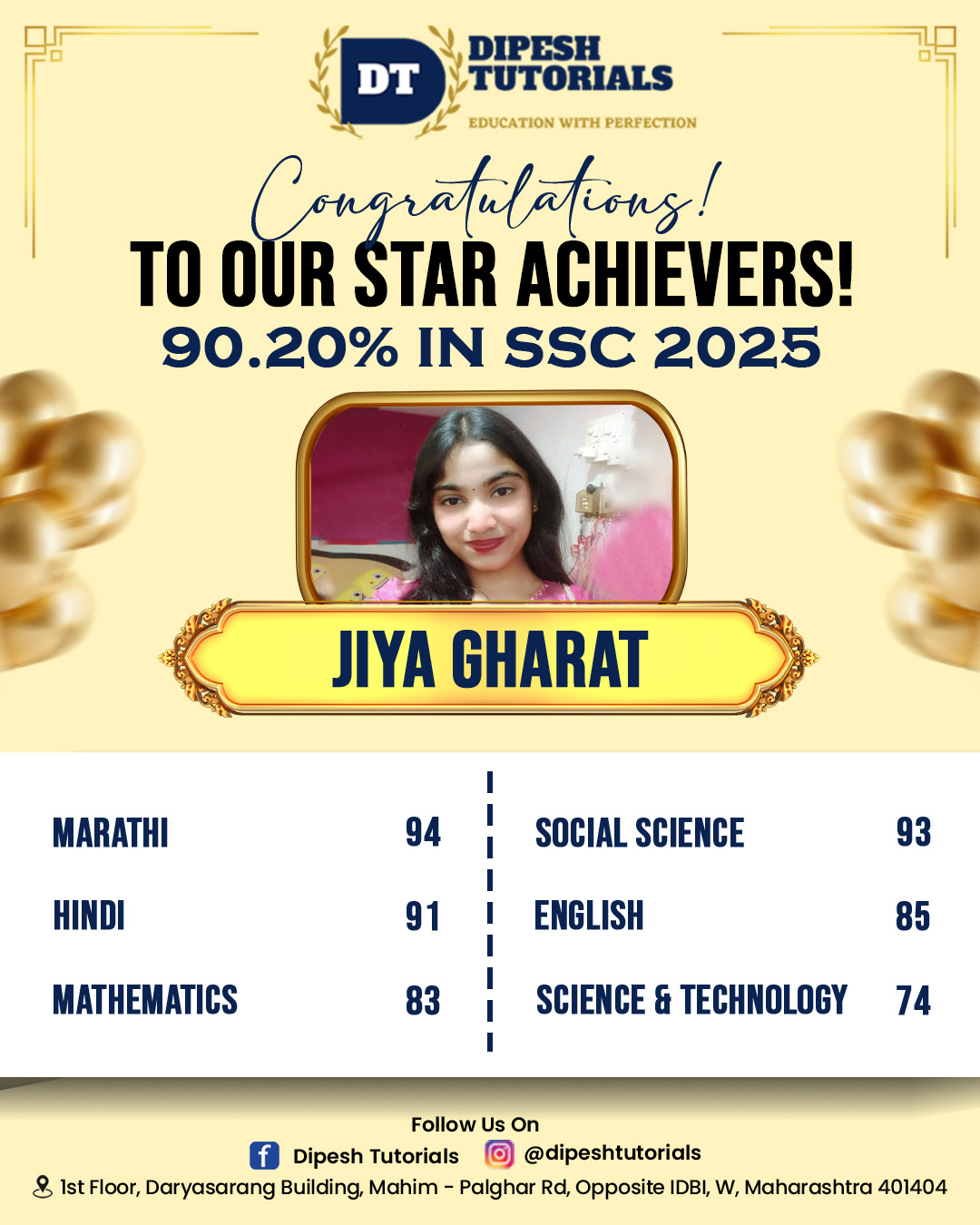 125, First floor, Darya Sarang Shopping Centre, Opposite IDBI, Mahim Road, Palghar(W) - 401404.
