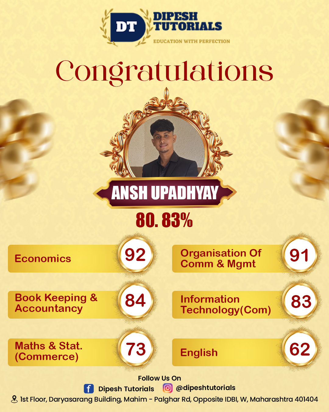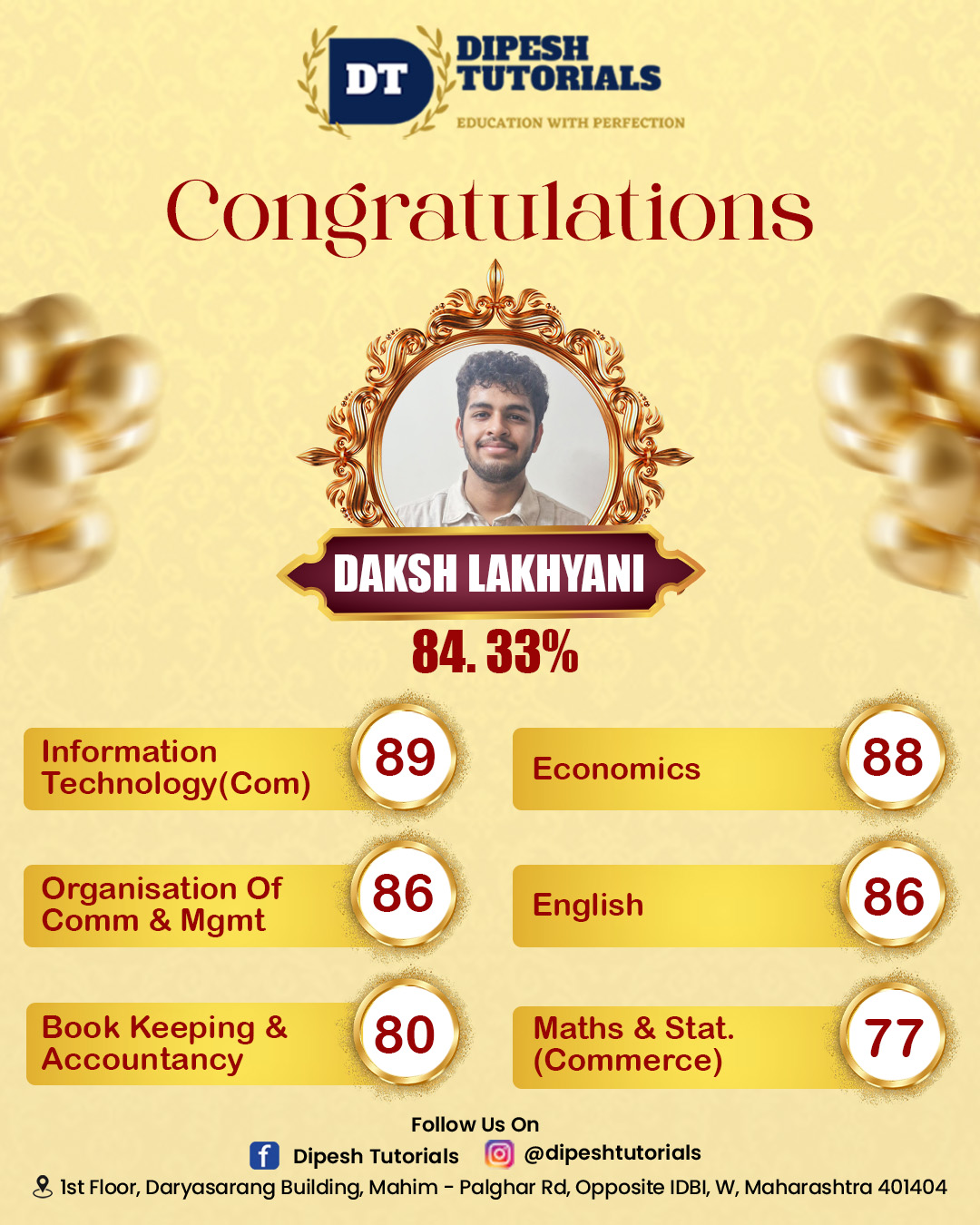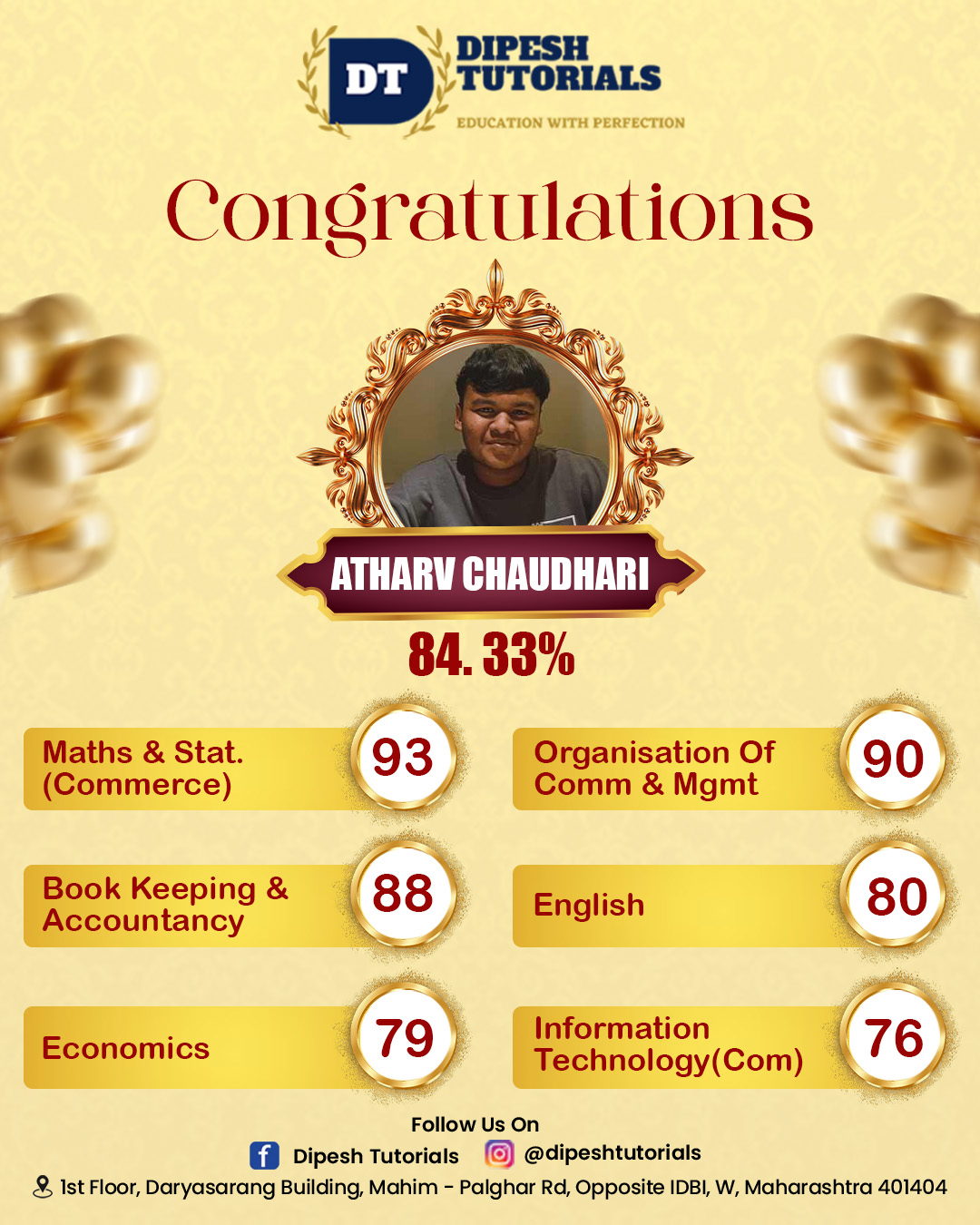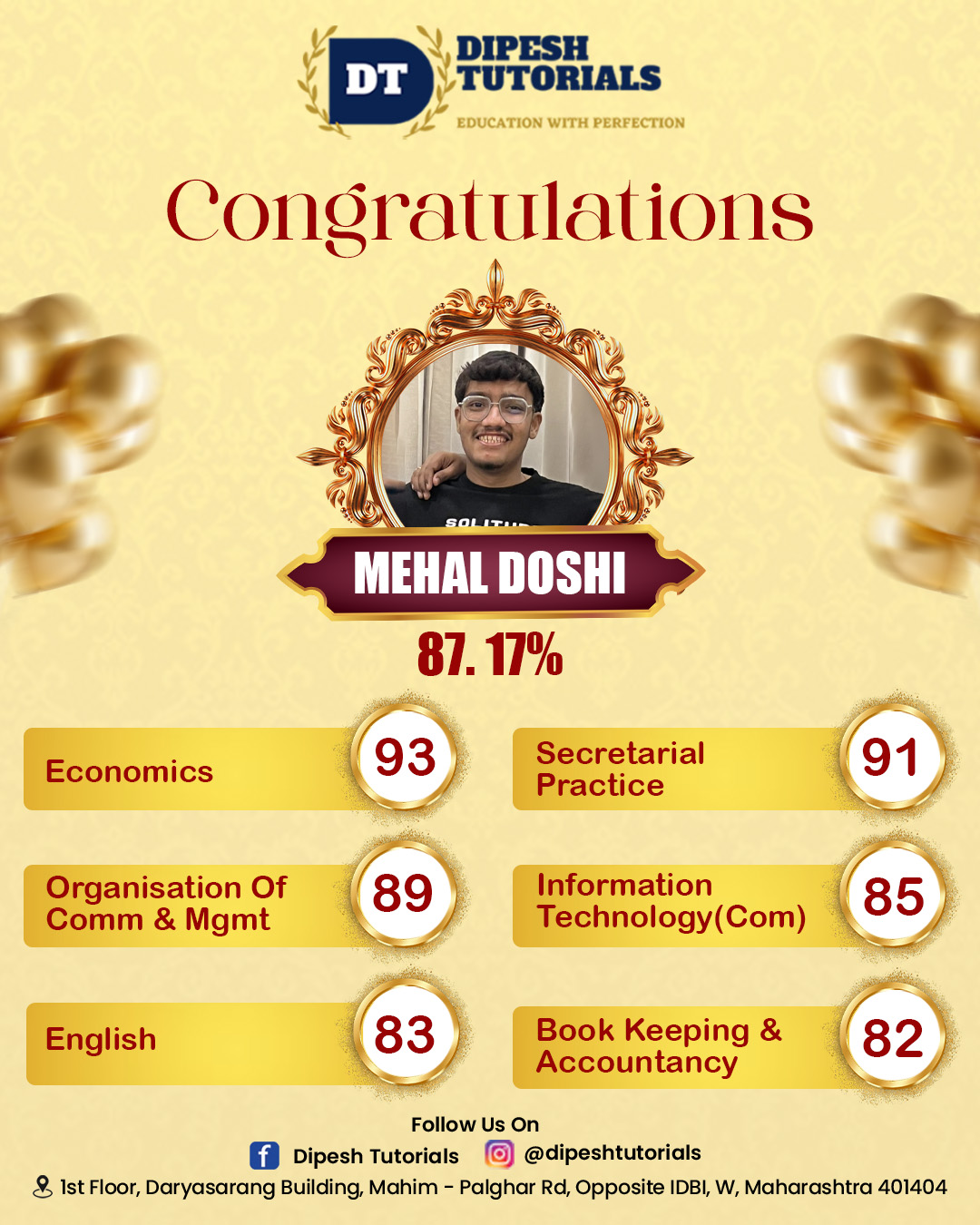 125, First floor, Darya Sarang Shopping Centre, Opposite IDBI, Mahim Road, Palghar(W) - 401404.