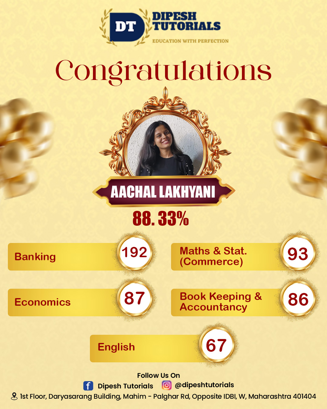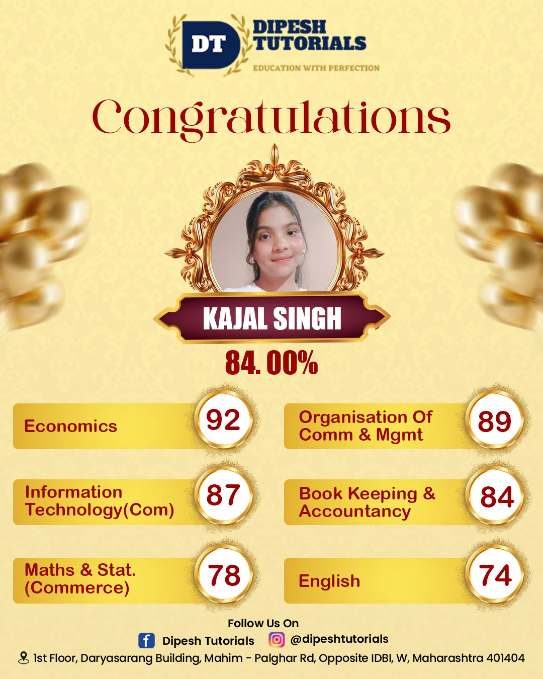125, First floor, Darya Sarang Shopping Centre, Opposite IDBI, Mahim Road, Palghar(W) - 401404.